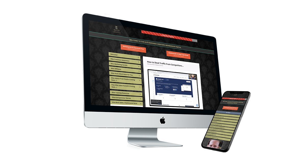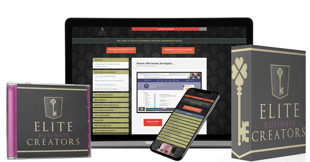 Elite Business Creators is an online course that helps entrepreneurs, and existing businesses develop some basic skills that may help them sell their products and services online. We make no claims or representation that by using Elite Business Creators you will earn money or make your money back. Testimonials shown are real experiences from Dustin's students. Their business’s results are not typical, and your business’s experience will vary based upon the effort and education of your business’s employees and management, the business model that is implemented, and market forces beyond anyone’s control.